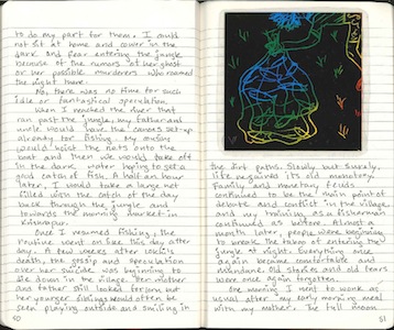 Rita Banerjee recently produced a hand-made novella, entitled, A Night with Kali, for the Brooklyn Art House Co-op. The book will be part of the Art House Co-op’s The Fiction Project (2011). The novella was hand-written and hand-illustrated according to the Art House rules. You can see scans of the project below: