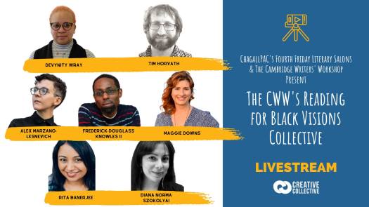 As part of ChagallPAC’s Fourth Fridays Literary Salon Series, the Cambridge Writers’ Workshop presents a COVID-19 Benefit Reading on May 22nd at 8:00 p.m. to 9:00 p.m. EDT. We are excited to have this event featured and broadcast on Creative Northshore Facebook Live Channel.